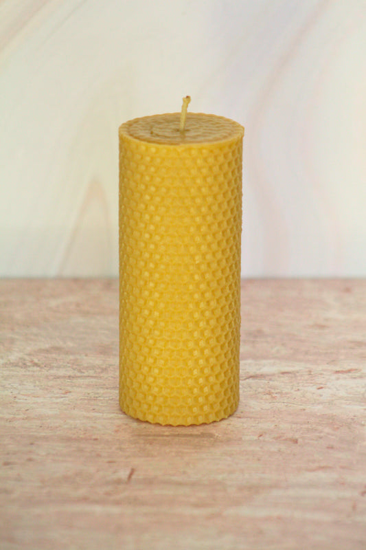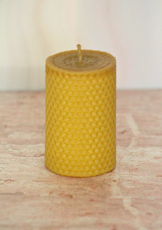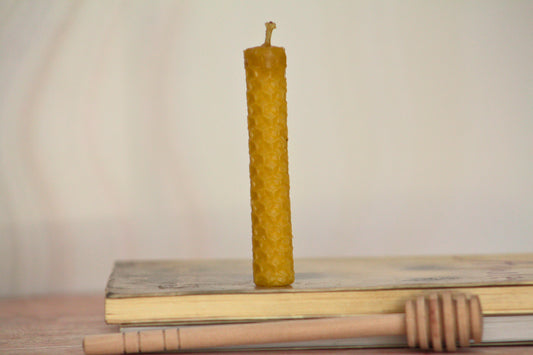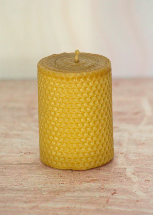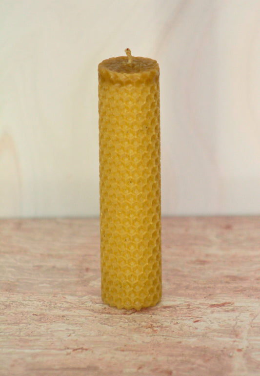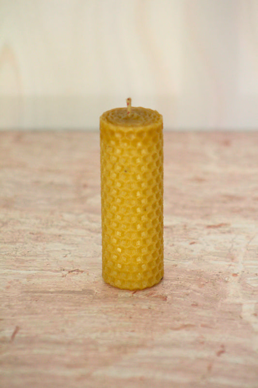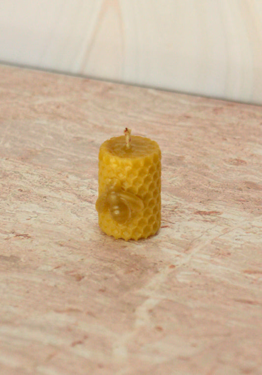 Velas de miel. Mini cirio de 13.5cm de alto x 5.5cm de diámetro. VM13555.