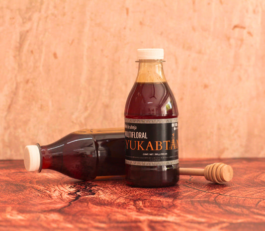 Disfruta de la mejor y más pura miel de abeja para endulzar tus platillos. Miel de abeja 100% natural producida en la selva baja de Yucatán.