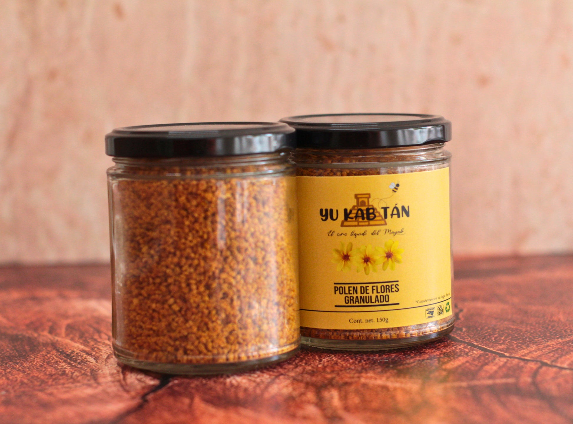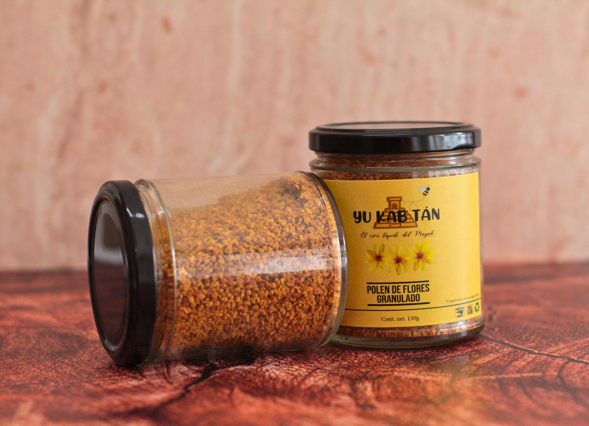 El polen es un polvo en forma de gránulo que las abejas colectan en las flores y lo almacenan en su colmena.