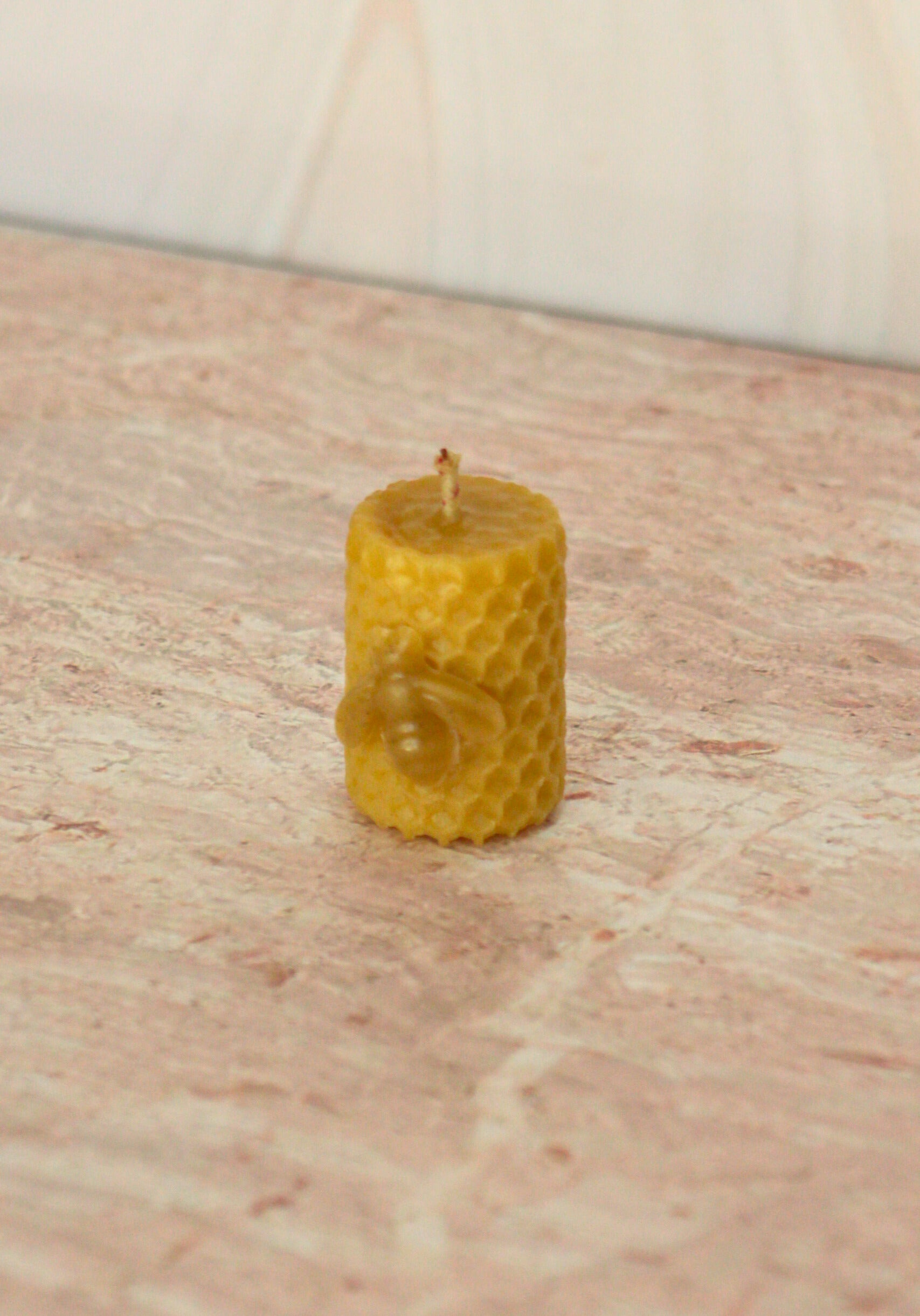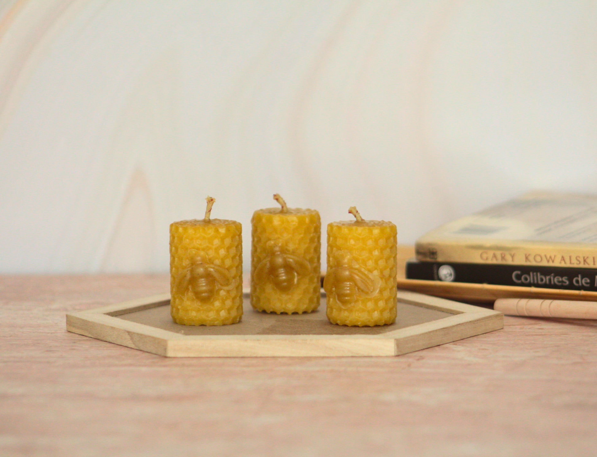 Velas de miel. Mini velas con abejas de 4.5cm de alto x 3cm de diámetro. VA04530.