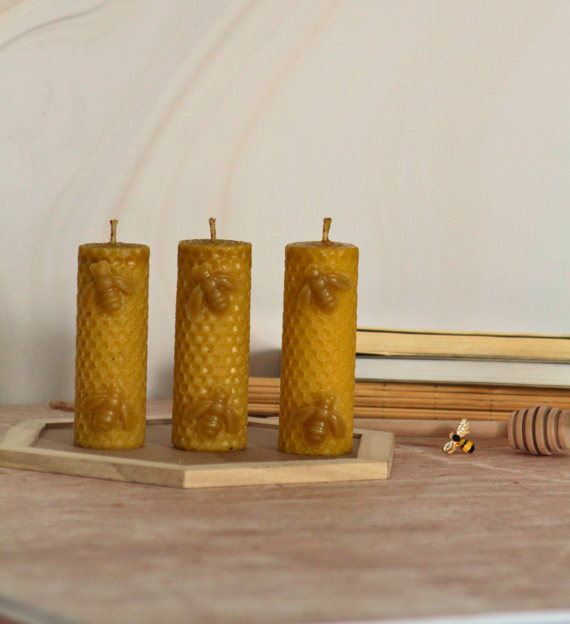 Disfruta el delicioso aroma a miel y cera de abeja que estas velas pueden ofrecerte.